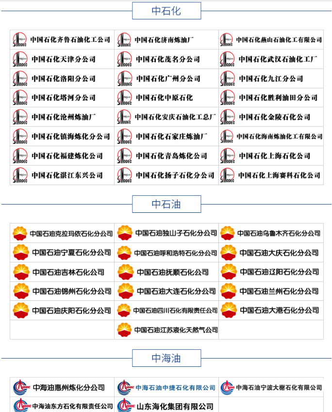 近年來,公司在齊魯石化、茂名石化、天津石化、遼陽石化、燕山石化、獨(dú)山子石化、青島煉化、福建乙烯、四川乙烯、神華煤化工、神華煤液化、惠州煉油、欽州煉油等大型石化及煉油裝置中供應(yīng)了大量的產(chǎn)品,產(chǎn)品質(zhì)量可靠、性能穩(wěn)定、售后服務(wù)及時(shí)周到,得到用戶的廣泛贊譽(yù)。在中石化、中石油、中海油、神華、地方煉油及電力行業(yè)中有較高的知名度。