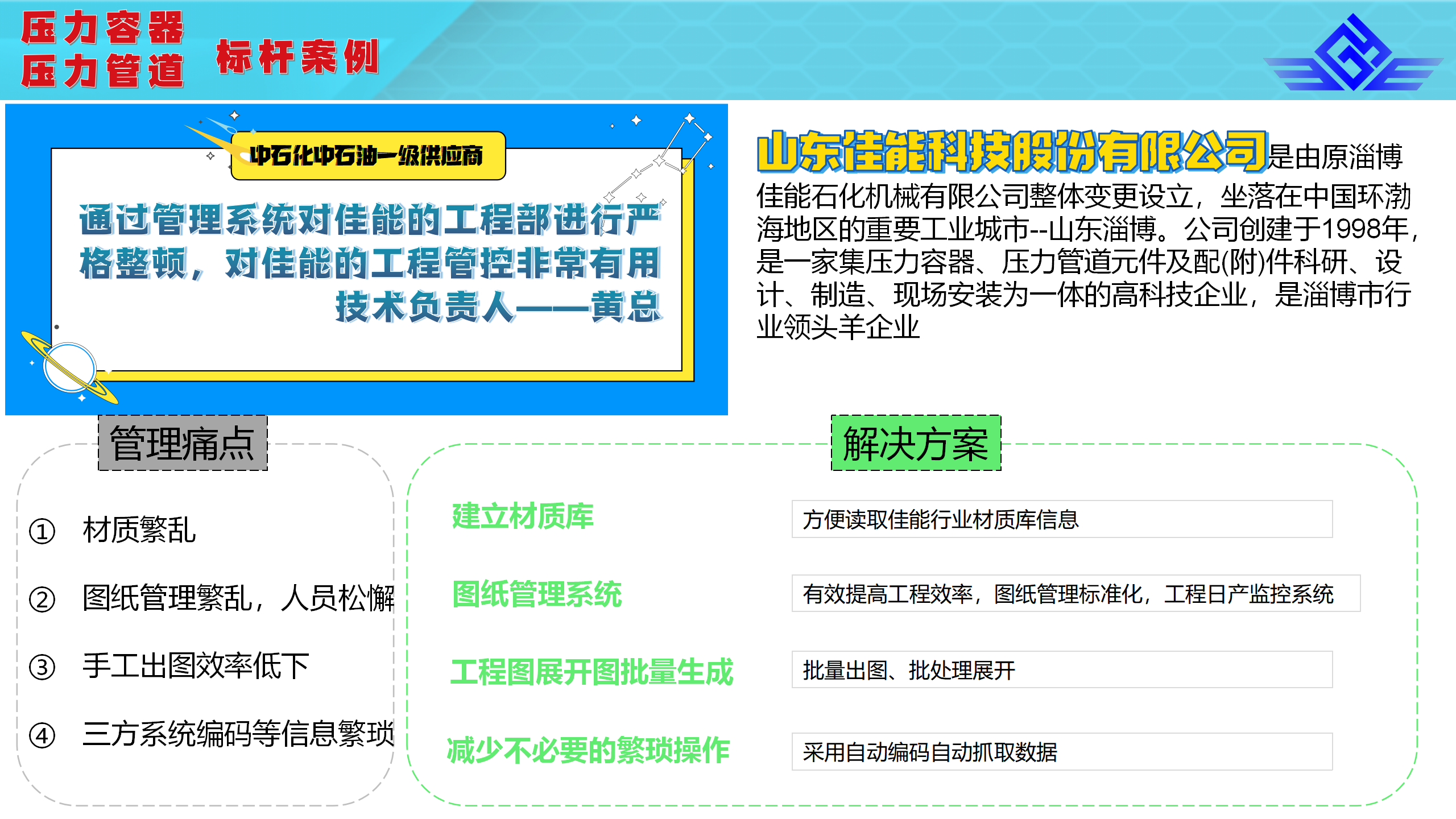 山東佳能科技股份有限公司創(chuàng)建于1998年,是一家集壓力容器、壓力管道元件及配(附)件科研、設(shè)計(jì)、制造、現(xiàn)場安裝為一體的高科技企業(yè),是淄博市行業(yè)龍頭企業(yè)。
